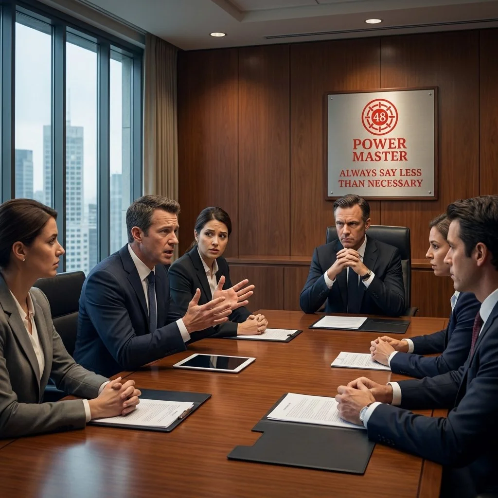 Boardroom tension meets Law 4: speak less, control more.